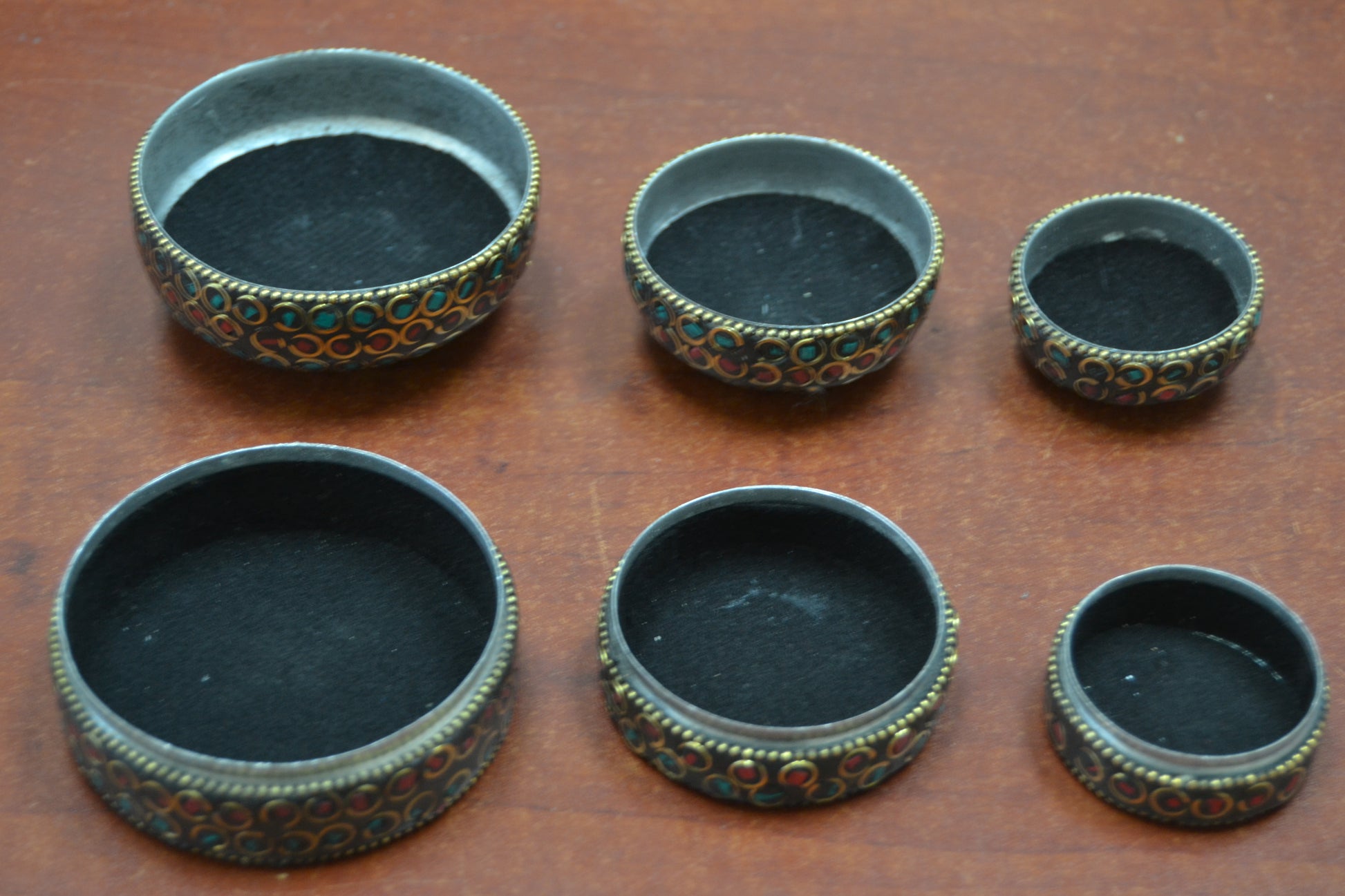 3 Pcs Handmade Turquoise Coral Nepal Trinket Boxes